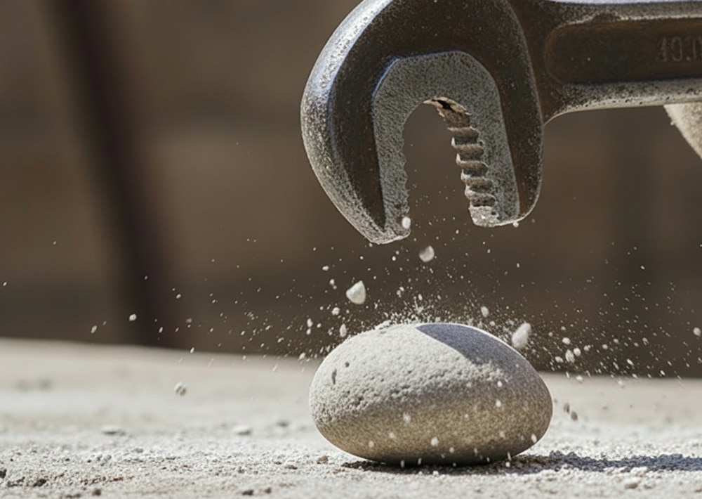 With the wrench in hand, Monroe hit the rocks as hard as he could, causing a crack to appear in the dark shell. Everyone crowded around to look inside, waiting to see what was hidden there.