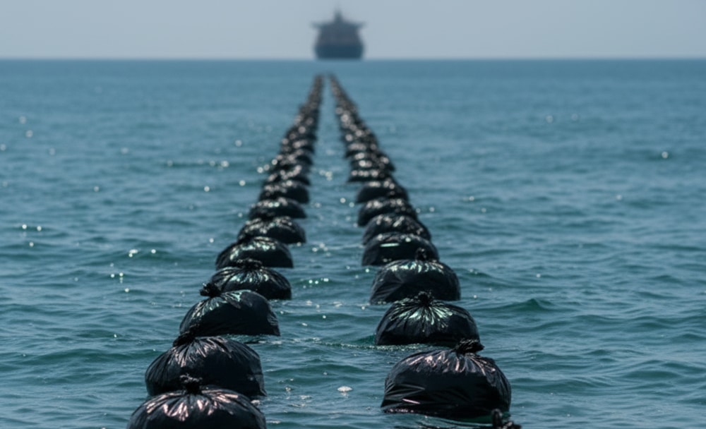 As they followed the line of bags further out to sea, the shape on the horizon grew larger and clearer. Soon it was obvious that it was a ship, not a natural formation.