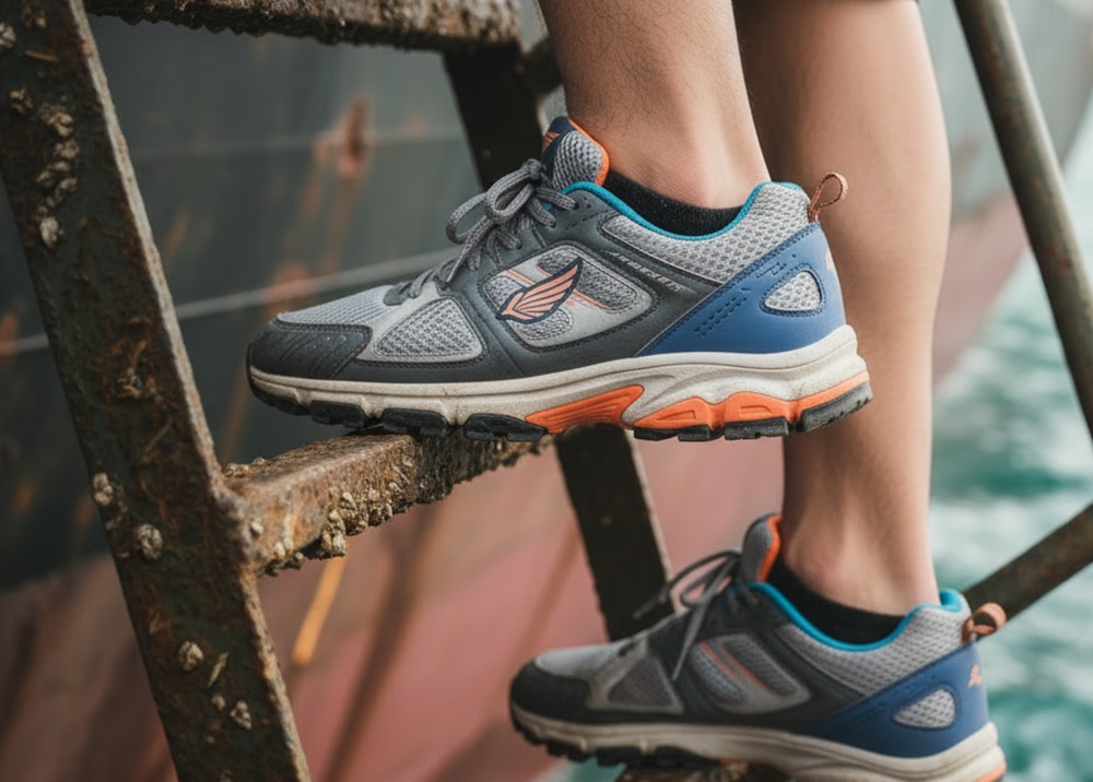 Once on board, the lifeguards tried to blend in with the shadows, moving behind large containers and stacks of bags.