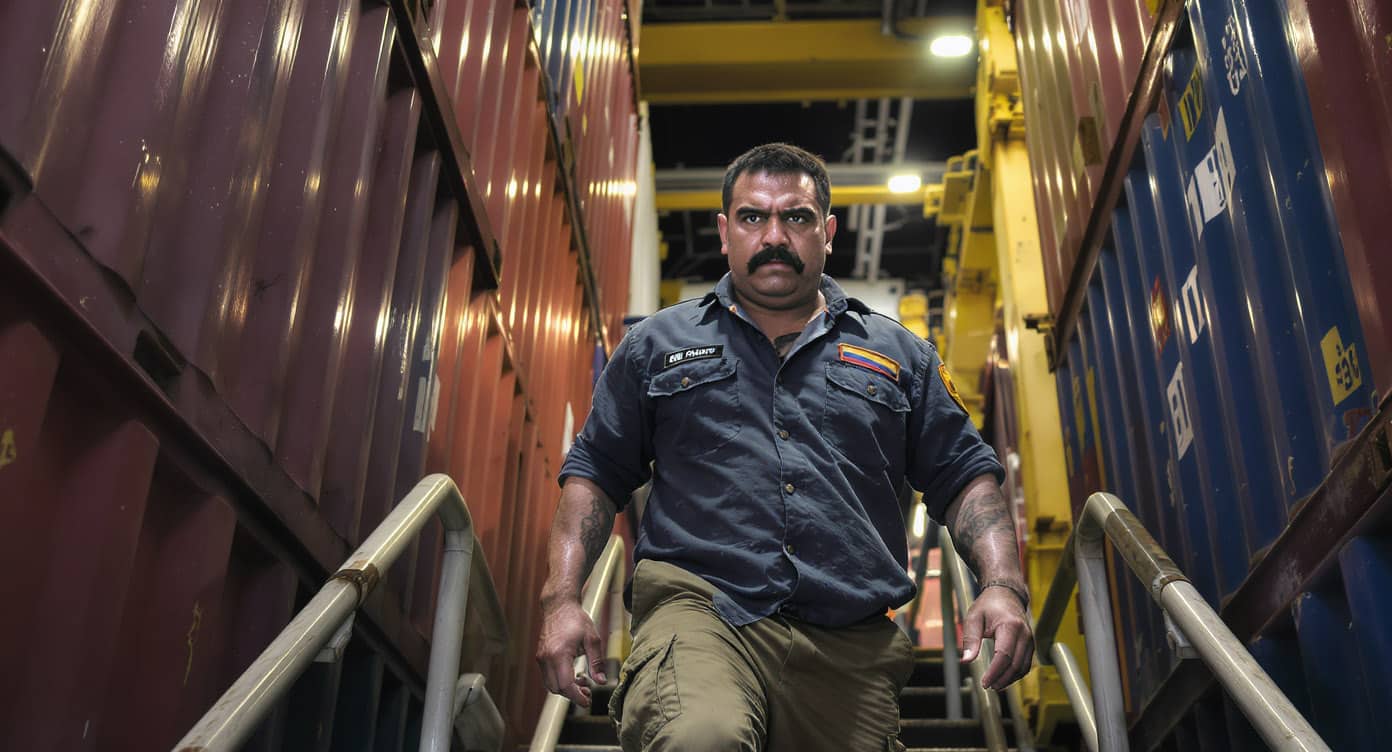 From their hiding spot, they noticed a tall man with a thick moustache walk out from the captain’s hut.