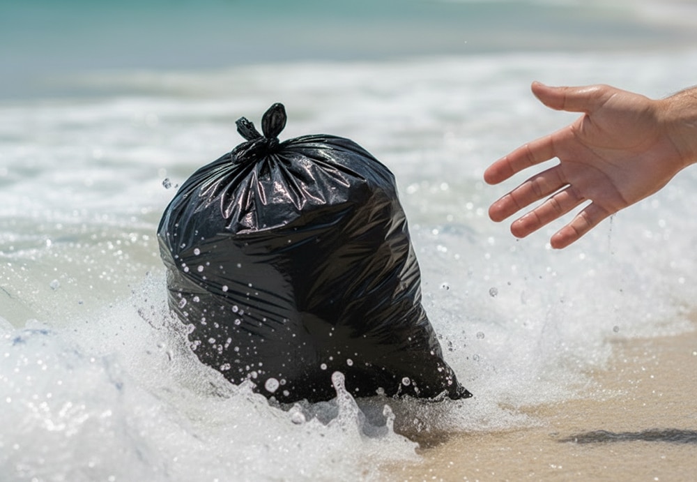 The bag weighed at least 40 pounds, which was odd to say the least. After some tugging, he rested it on the sand beside him as he fiddled with the knot.