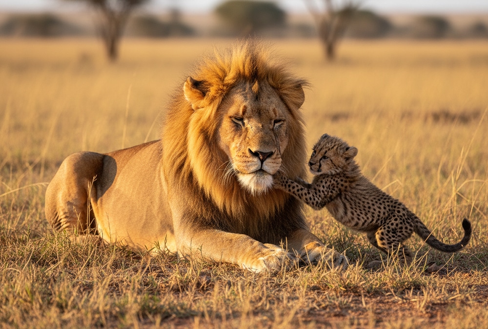 It wasn’t a traditional choice, but it felt right. Every day, Leo curled up around the cheetah cub, licking her gently and keeping her safe.