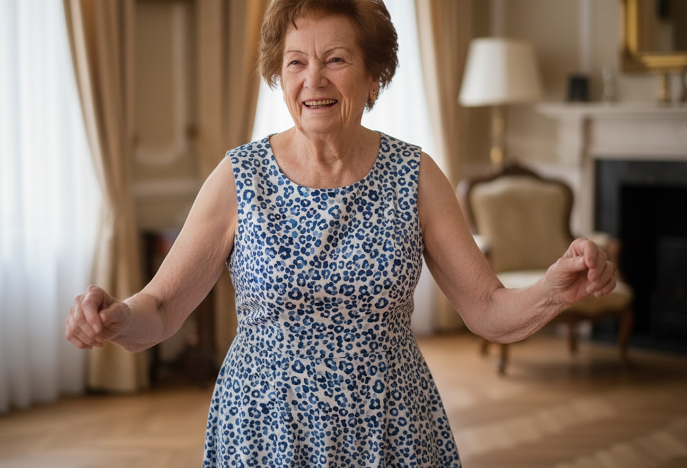 Emma presented the blue and white dress to her Grandmother and asked her to put it on. It still fitted like a glove, even after all these years.