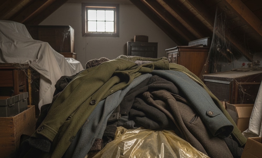 Under a pile of faded coats, Emma found a garment wrapped in plastic. It was sealed tightly, and the plastic was yellowed with age, but she could see that great care had been taken in how it was protected.