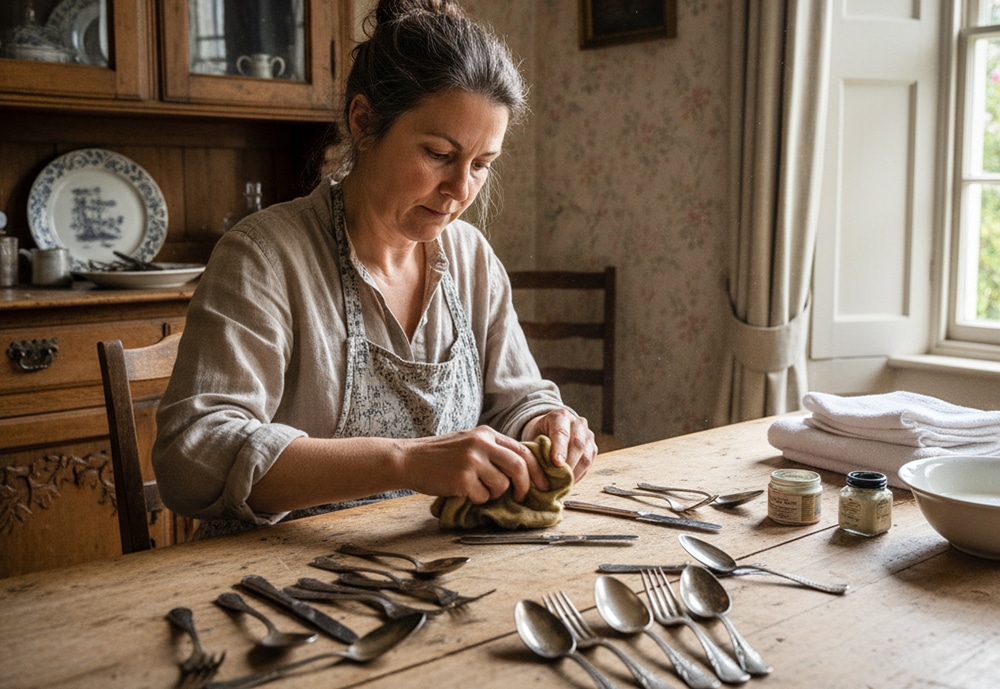Emma brought the dress downstairs, where her mother was busy sorting through old silverware, deciding which items to keep and which to sell.