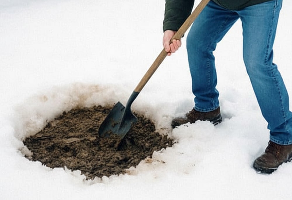 Like this exact space underneath his backyard was hollowed for some reason. The spade slid into the ground with almost zero resistance.