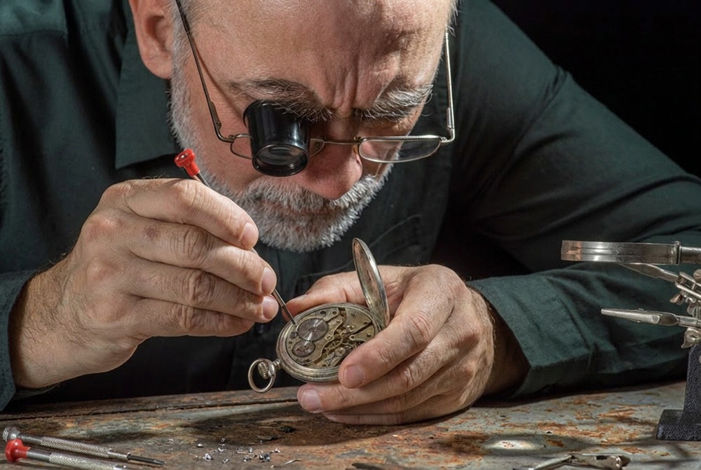Keller blickte kaum auf, als Daniel die verrostete Uhr auf den Tresen legte. Er war damit beschäftigt, an einer kleinen silbernen Taschenuhr zu arbeiten, seine Brille tief auf der Nase.