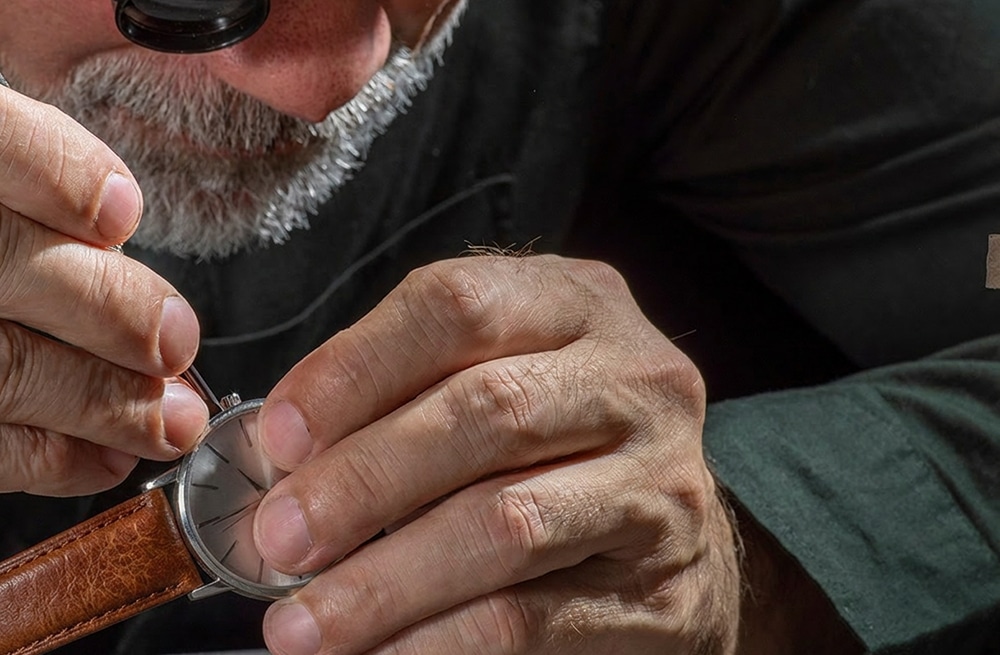 Der Juwelier drehte die Uhr mehrmals um und untersuchte sie eingehend. Er musterte jede Ecke und wischte die Rostflecken vorsichtig mit einem Spezialwerkzeug weg.