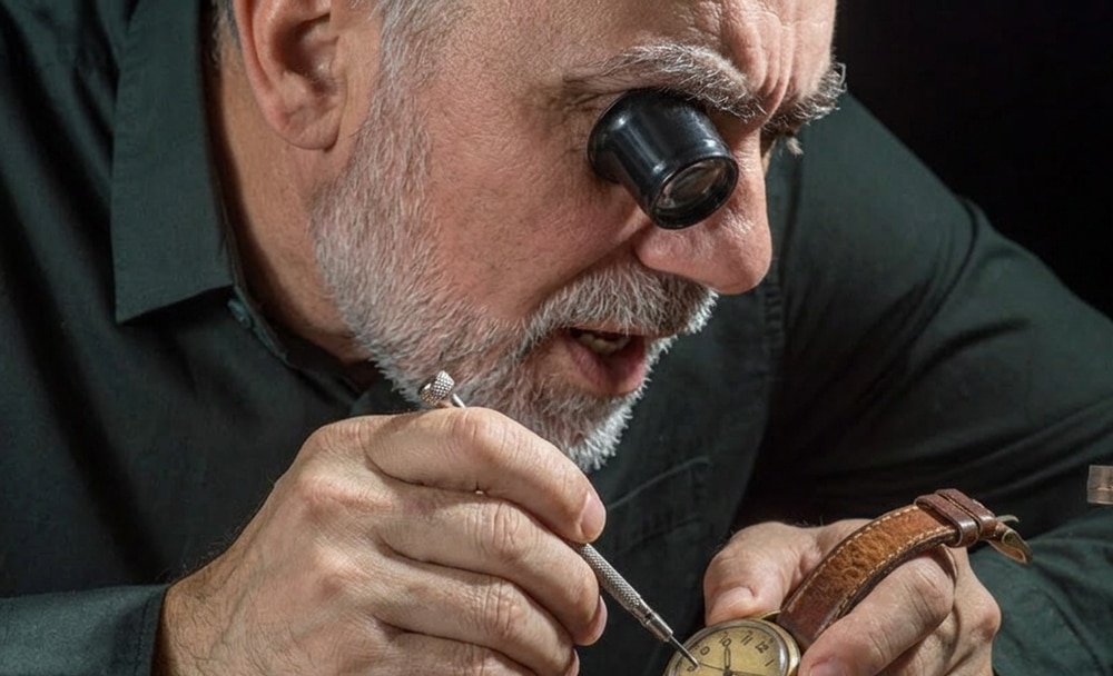 And apperently this tiny symbol stuck something deep within the jeweller, because the moment the old man lay eyes on that part of the watch he began to speak to himself in a stuttering tone.
