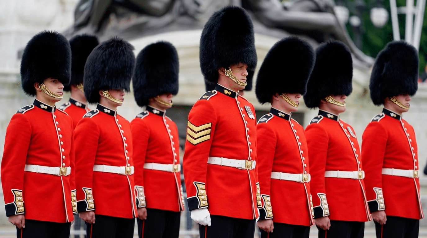 Back in formation, the other royal guards remained frozen at their posts. Their strict training forced them to hold completely still, but the strange situation unfolding in front of them was almost impossible to ignore.
