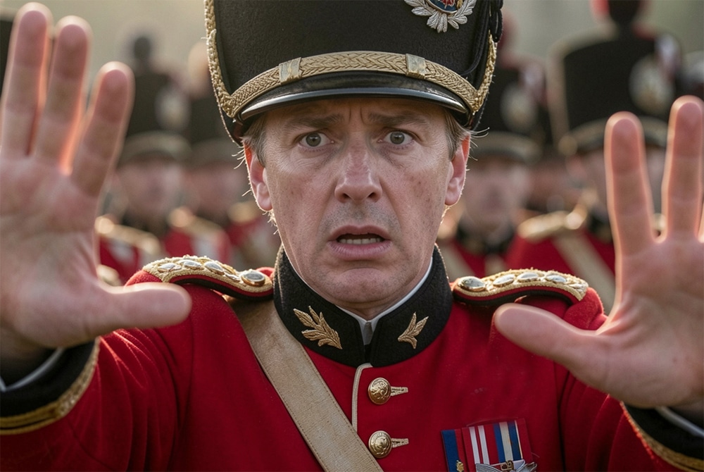Turning to face the approaching car, he put himself between his fellow guards and the vehicle, creating a visible shield and taking control.