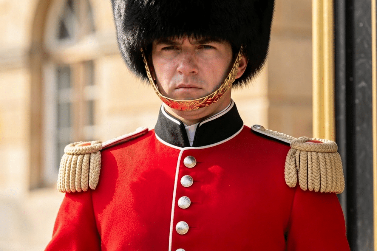 The man shuffled to the front barrier, clearly struggling to stand for long. Still, he seemed determined to get close to the royal guards.