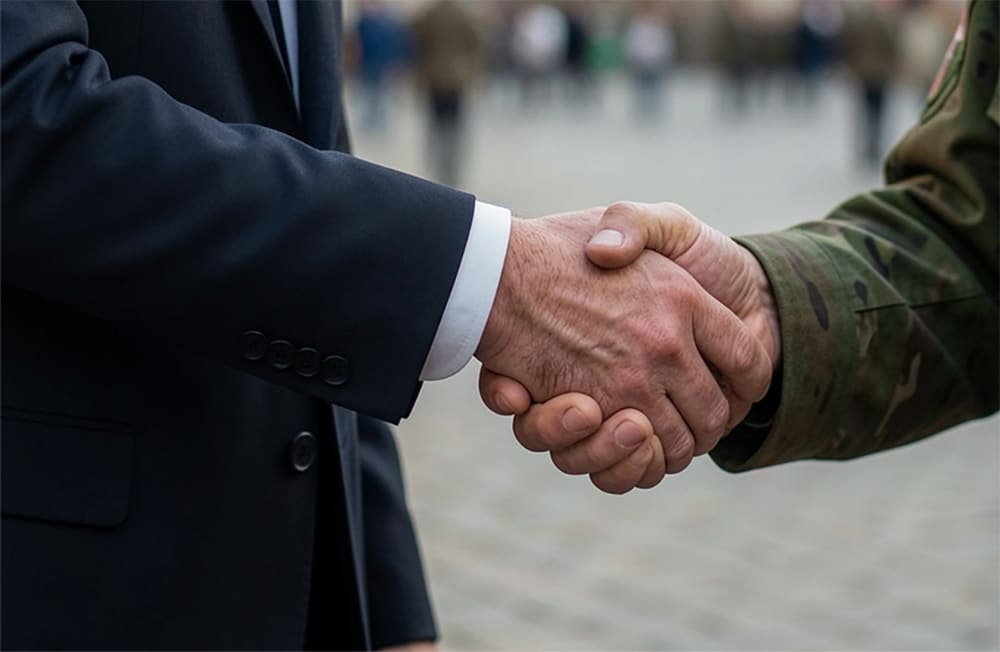 The suited man first shook the elderly man’s hand, receiving a quiet thank you for his quick arrival.