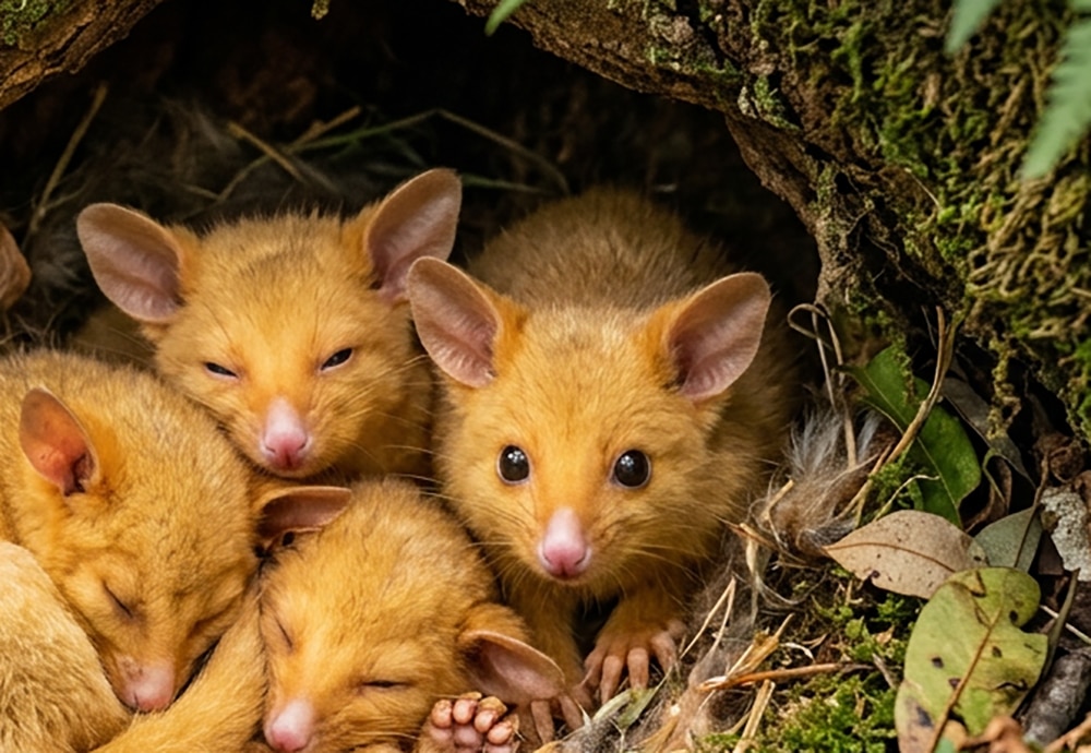 Peering into the hollow, Emma felt her eyes widen in surprise. Curled together inside the nest were several small animals that looked just like the one she had found in her garden.