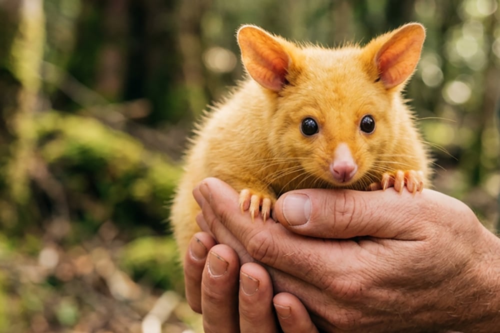 Dr. Harris slowly reached into the box and gently lifted the yellow possum in both hands. The small animal blinked sleepily, clearly unaware of what was happening.