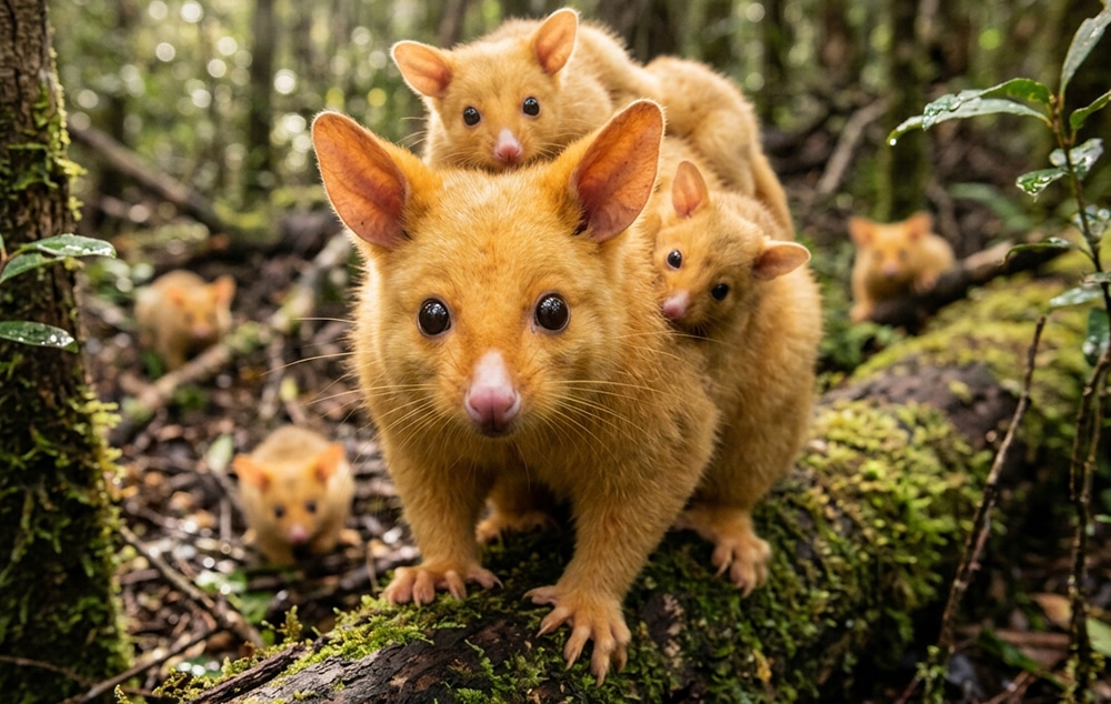 The mother possum curled protectively around her young again, including the golden wanderer Emma had rescued earlier.