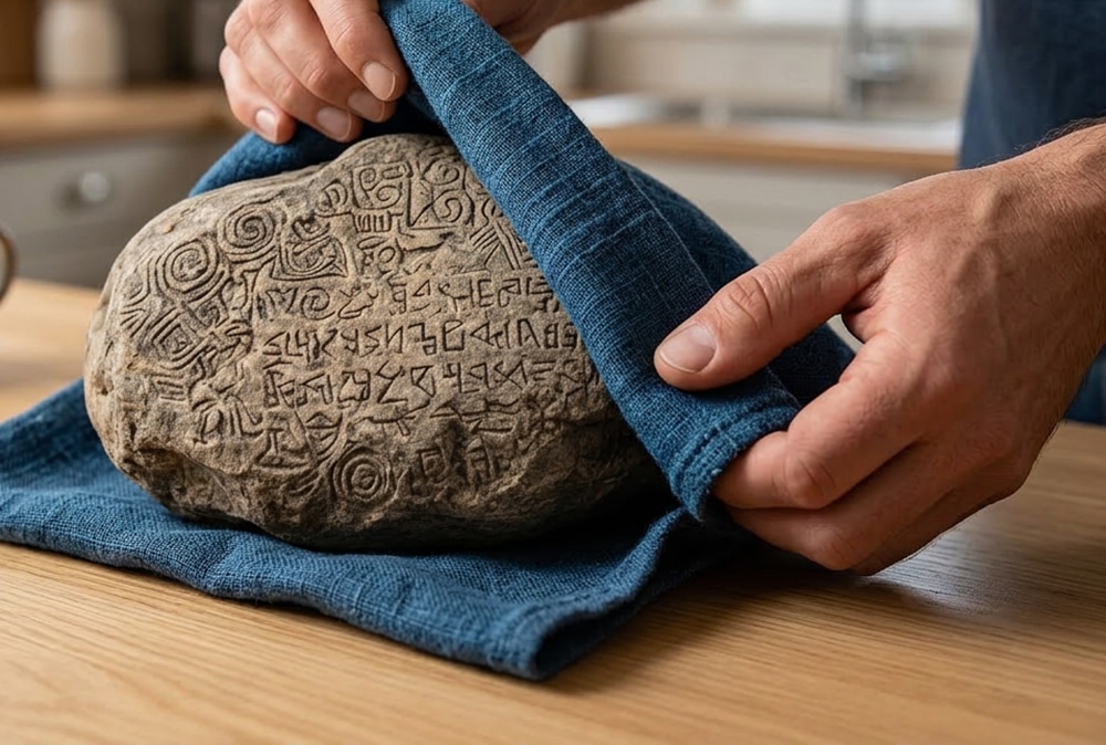 Inside the house, Peter cleared space on the kitchen table, setting the sphere down gently before unwrapping it.