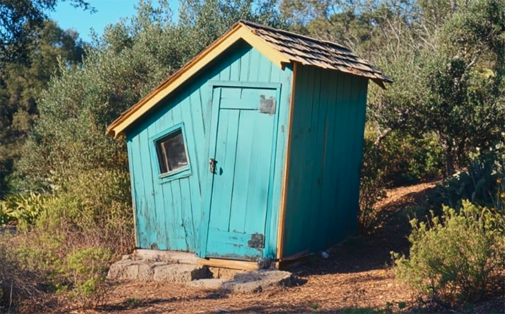 Near the far edge of the yard, partly hidden behind a line of bushes, stood a small wooden shed. It leaned slightly to one side, its paint faded and chipped in places.
