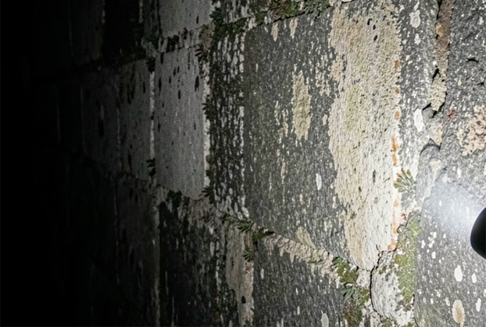 She paused just inside the entrance and turned slowly, letting the flashlight follow her movement across the walls.