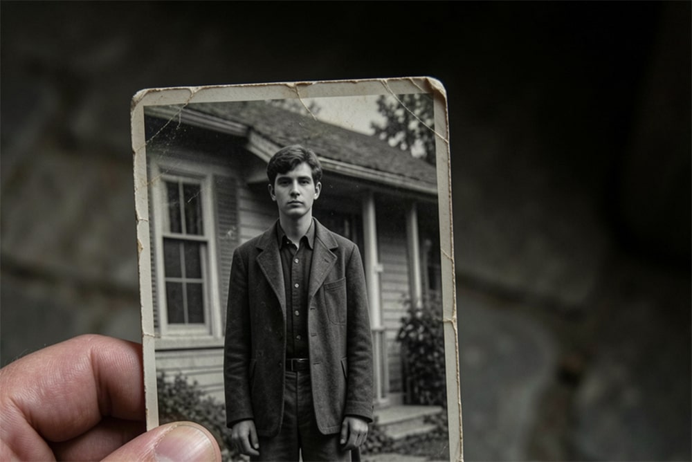 She brought the flashlight close and studied the image. A man standing in front of this very house, younger than whoever had lived here at the end.