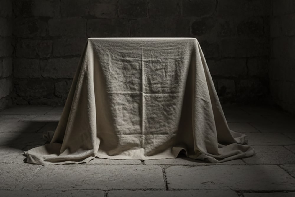 She set the tin down gently and turned back toward the center of the room. The square block with its tarp was still waiting, as patient as everything else in this space had been.
