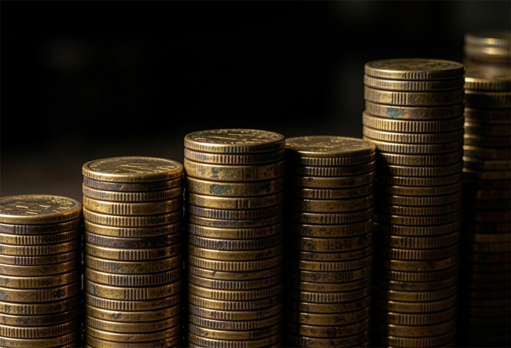 Her eyes landed first on the coins. Arranged in neat stacks at the front edge of the surface, each column pressed close to the next, their surfaces catching the flashlight with a warm and unmistakable gold.