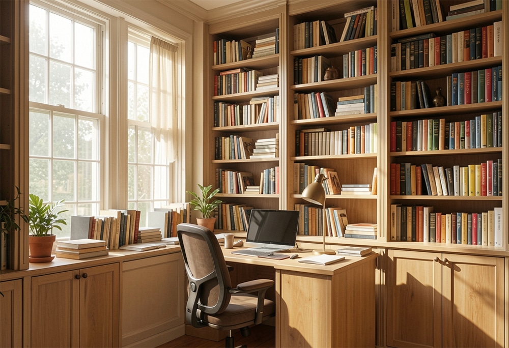 The light came in at a soft angle, landing across the shelves in a way that made the whole room feel lived-in and important. “This is the study,” David said quietly.