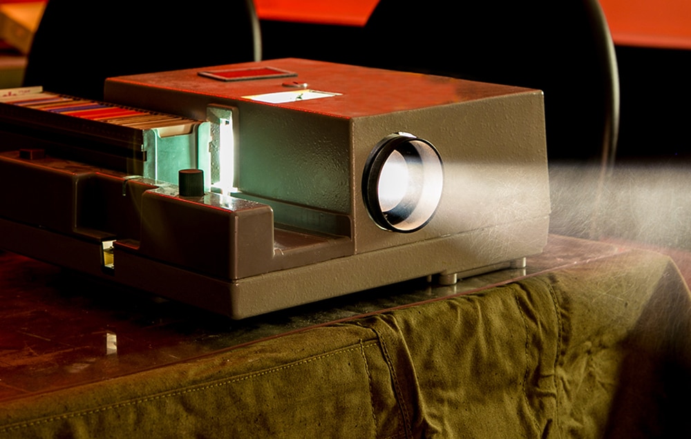 David turned to look at the machine itself. It was old — genuinely old, the kind of projector that belonged in a school classroom from forty years ago. The film reel spun slowly at the top.