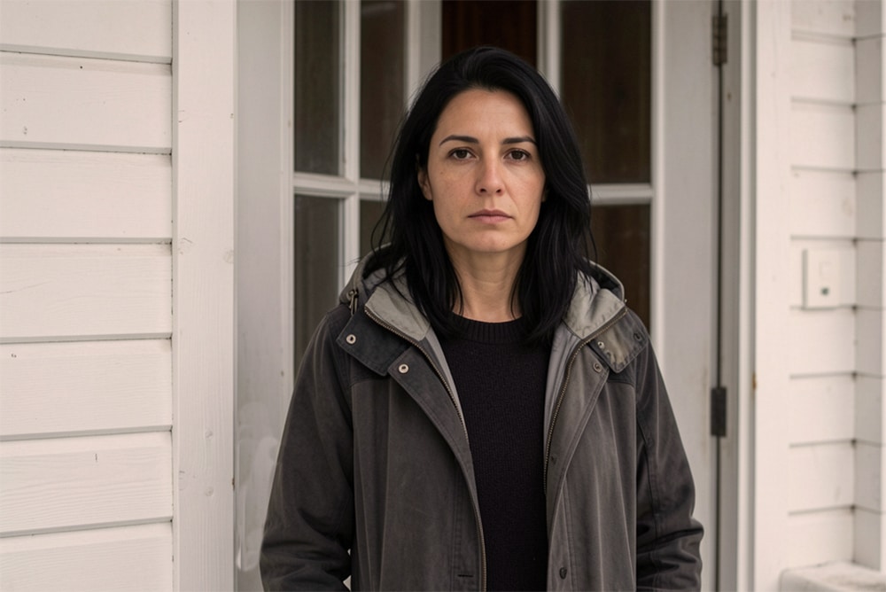 A woman in her mid-thirties stood in the doorway, looking at them with surprise and quiet curiosity. She had dark hair, steady eyes, and said nothing at first.