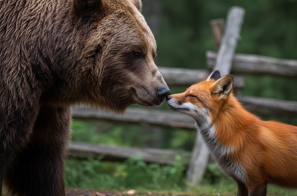 Bruno approached slowly when he saw her, his movements calm but intent. The fox stepped forward without fear, closing the distance between them until they stood inches apart in silence.