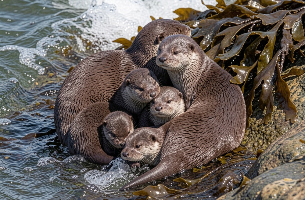 The closest group of otters was clustered near a section of kelp that had survived the dredging, three adults and what looked like two pups, pressed together and barely keeping position against the current stirred up by the machinery.