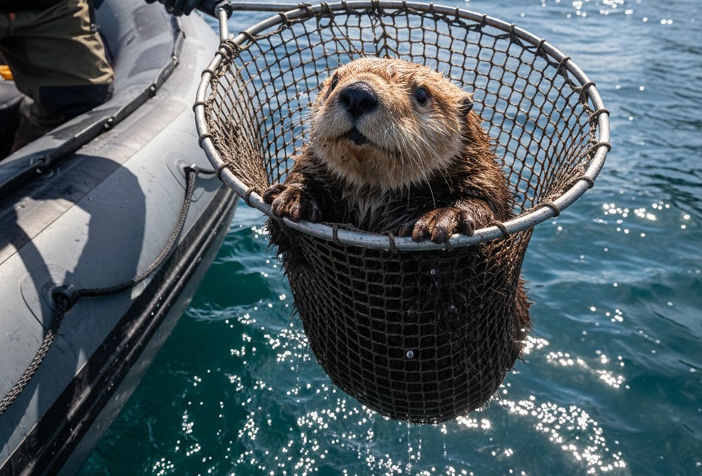 The last otter resisted weakly before settling into the net, its body trembling as Derek lifted it free from the murky water.