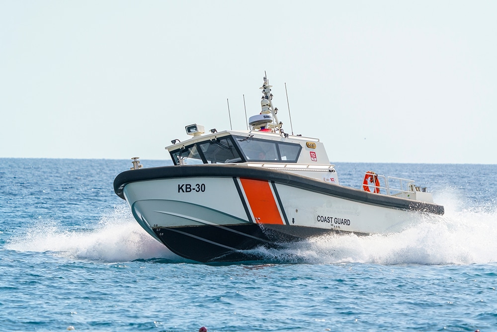 Tom glanced toward the horizon, where a vessel was cutting fast across the surface, its presence steady and official as it closed the gap with purpose.