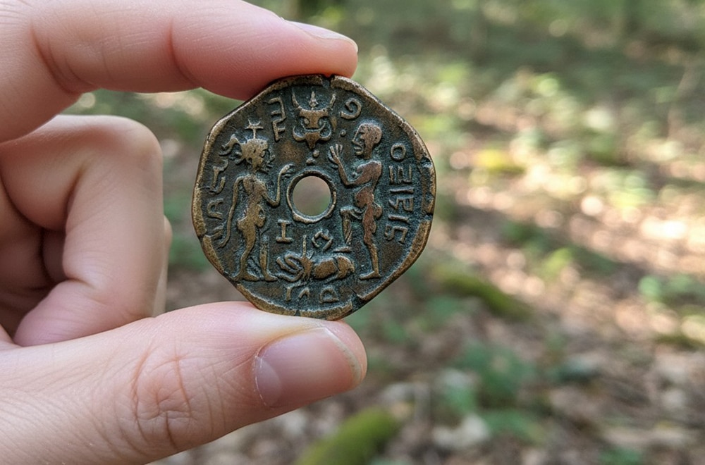 There were figures on it, two human shapes facing each other with something between them. The markings around the edge were unlike anything in the Roman or medieval catalogs she owned.